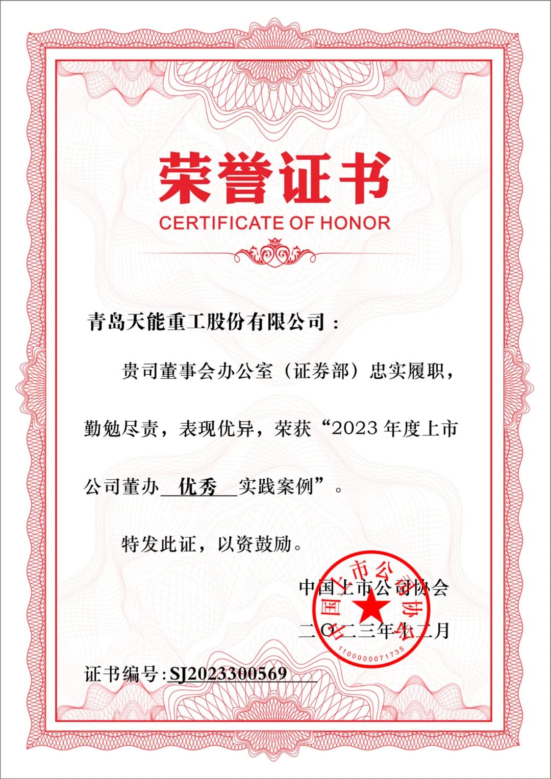 12月12日,中国上市公司协会“2023上市公司董办最佳实践”创建活动结果发布,乐投(中国)重工董事会办公室(证券部)荣获“2023年度上市公司董办优秀实践案例”奖项,体现了中国上市公司协会对乐投(中国)重工在上市公司规范运作和创新实践等方面的高度认可。