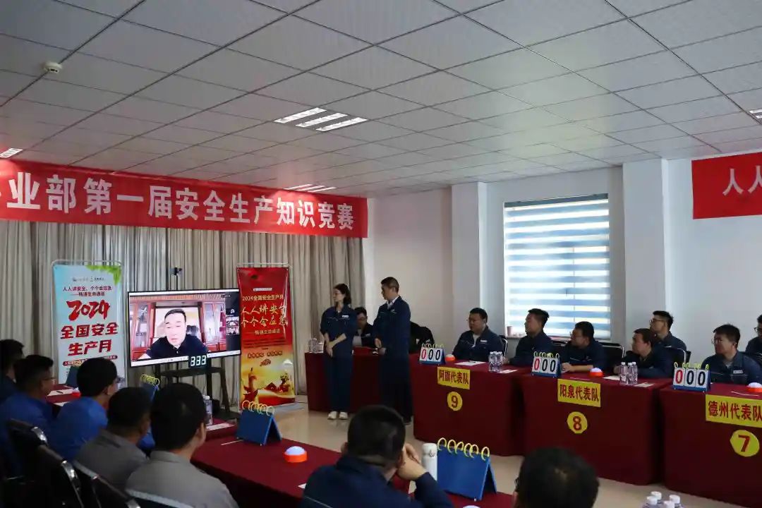 为进一步增强全员安全意识,提高安全应急能力,提升安全生产管理水平,确保安全生产形势持续稳定,在全国第23个“安全生产月”活动期间,新能源事业部于6月20日组织所属场站9支代表队,开展了以“人人讲安全,个个会应急——畅通生命通道”为主题的安全知识竞赛活动。