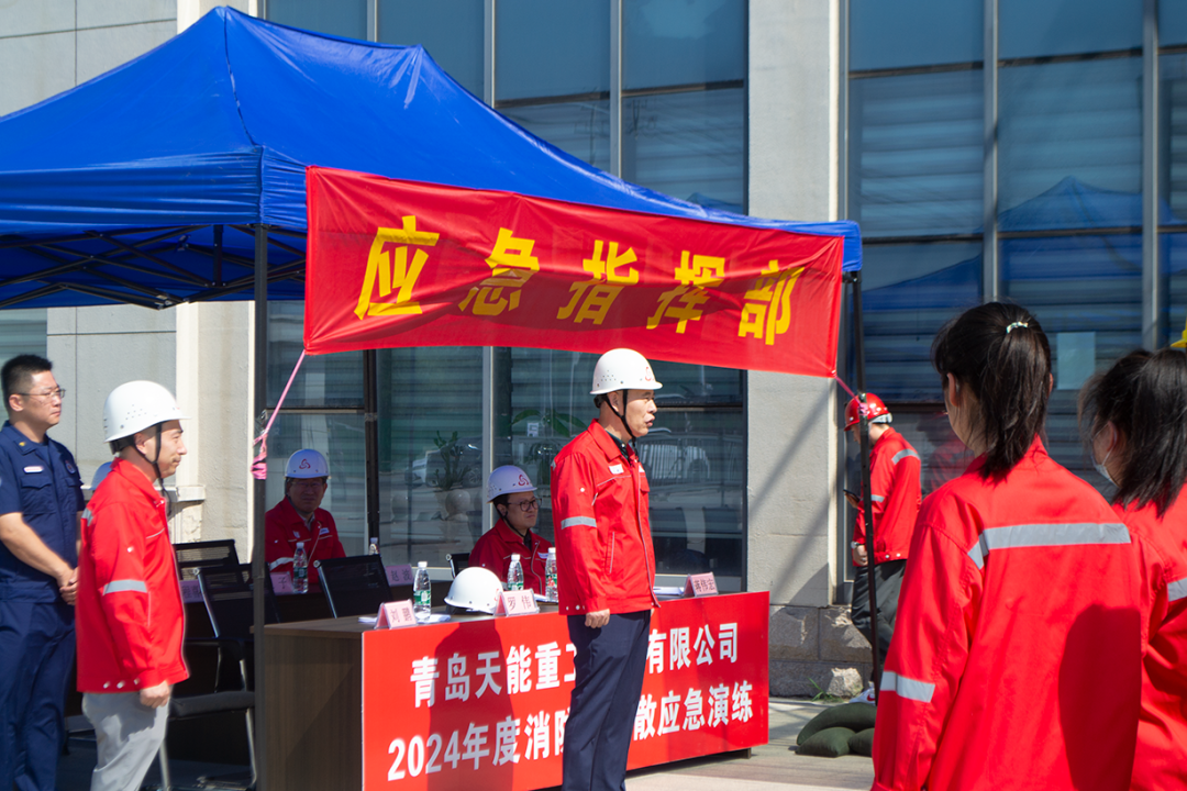 为扎实推进安全生产攻坚治本行动,增强全体员工的安全生产意识,提升全体员工的应急处置和避险逃生能力,第23个全国“安全生产月”期间,公司于6月28日在青岛塔筒生产基地组织开展2024年度消防与疏散应急演练活动,并邀请李哥庄镇应急局副局长刘鹏、李哥庄镇消防救援站副站长罗伟现场观摩指导。公司董事长黄文峰、总经理张兴红以及公司安委会全体成员、青岛塔筒生产基地干部员工等100余人参加演练。