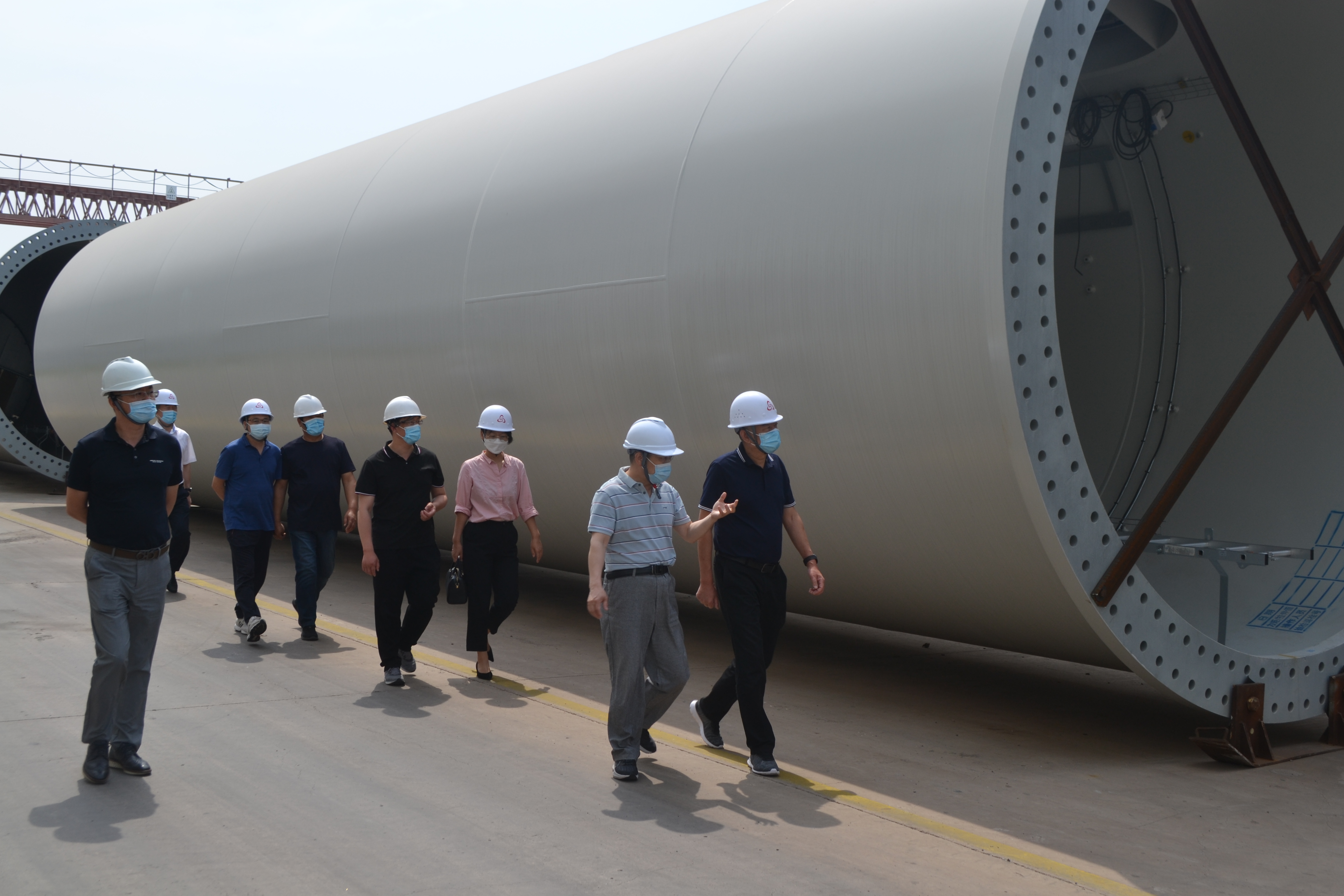 调研团队一行首先前往青岛乐投(中国)重工三期塔筒生产基地进行参观,现场听取了郑旭对塔筒生产工艺、加工流程、生产基地布局等相关情况的介绍,并且进一步了解了厂区安全生产、疫情防控等相关措施。